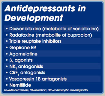antidepressants (desvenlafaxine and radafaxine), and drugs that combine actions
