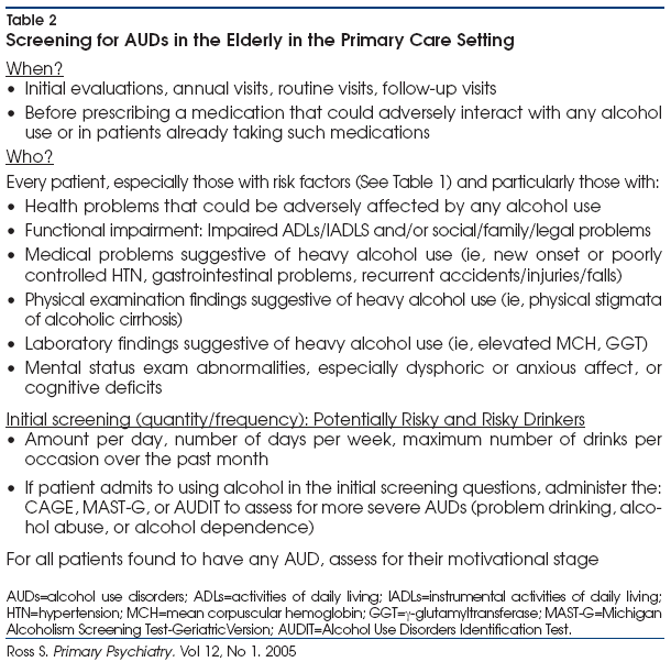 elderly-specific screening instrument. Alcohol