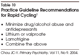 The current American Psychiatric Association (APA) “Practice Guideline for the Treatment of Patients with Bipolar Disorder”1 was published in 2002 and is a revision of an earlier version published in 1994. The latest revision represents a summary of a much larger evidence base than the previous version and is a distillation of both available research and expert opinion.